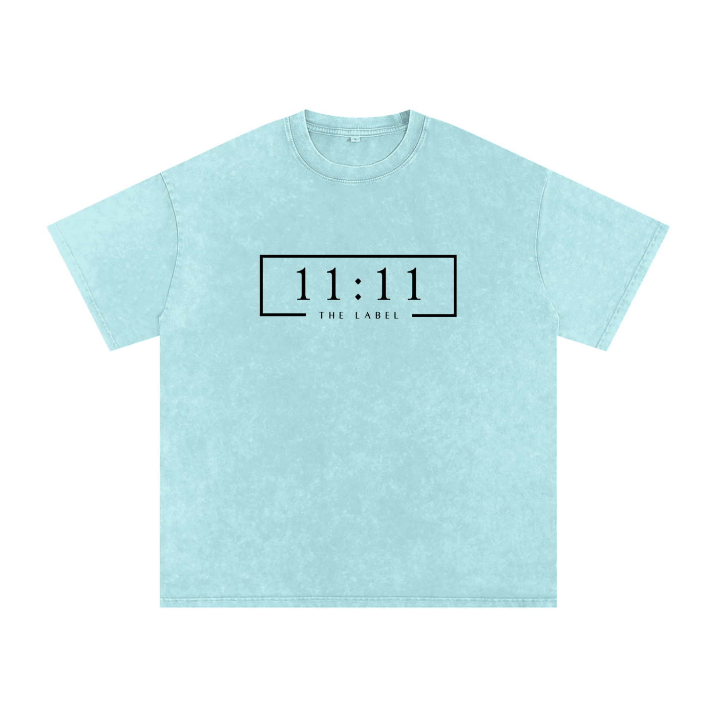 '11:11 THE LABEL' Oversized Acid Wash Tee- Black Print