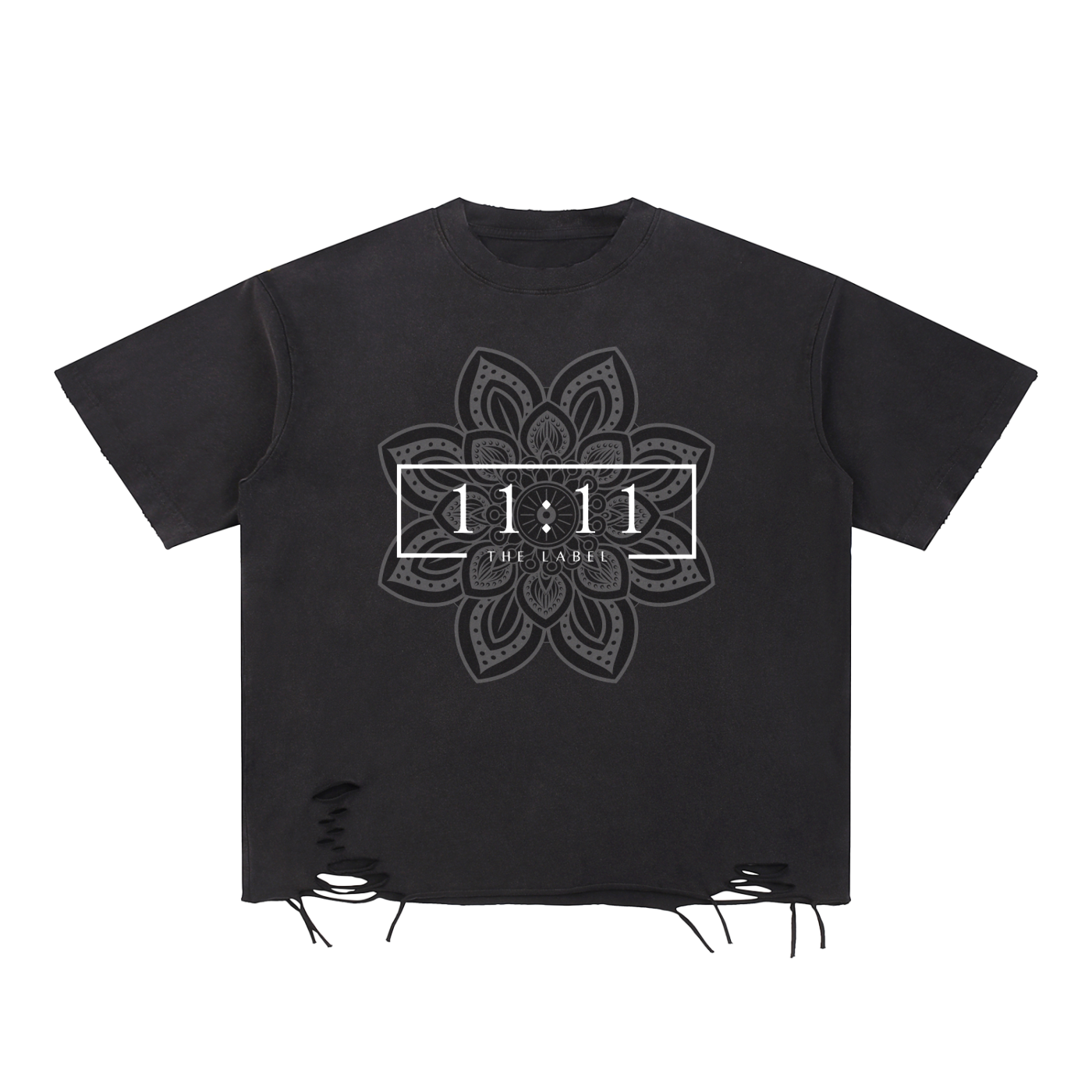 '11:11 THE LABEL w/Mandela' Snow Washed Raw Edge Distressed Tee