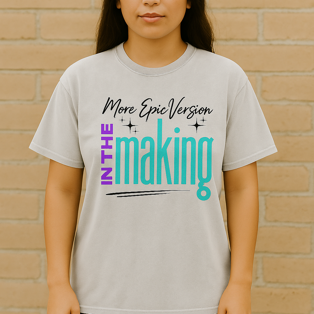 Because the glow-up is still loading — and it’s about to be legendary. This vibrant design is for the dreamers, doers, and unapologetic self-evolvers. This print is your stylish reminder that greatness doesn’t happen overnight… but yours is definitely on the way. Whether you're in a season of growth, change, or full-blown reinvention — rock this tee as proof that you're not done, you're just getting more epic.
