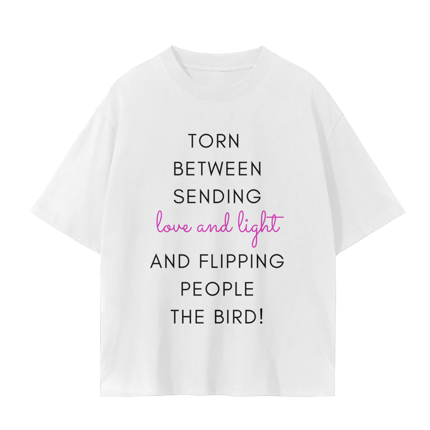 Torn between healing... and throwing hands, with a vibe of 'Namaste'... but not today! Let’s be real — some days it’s sage and self-love. Other days, it’s one deep breath away from flipping the bird. For the ones who send blessings… but still set boundaries.