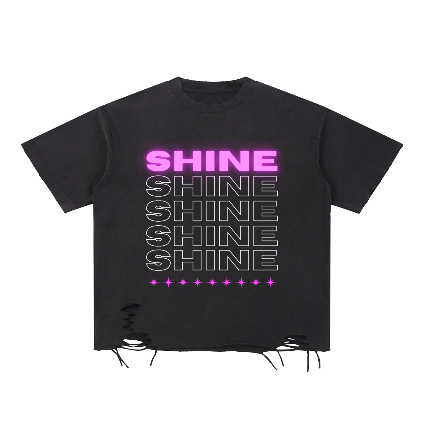 'SHINE' Snow Washed Raw Edge Distressed Tee