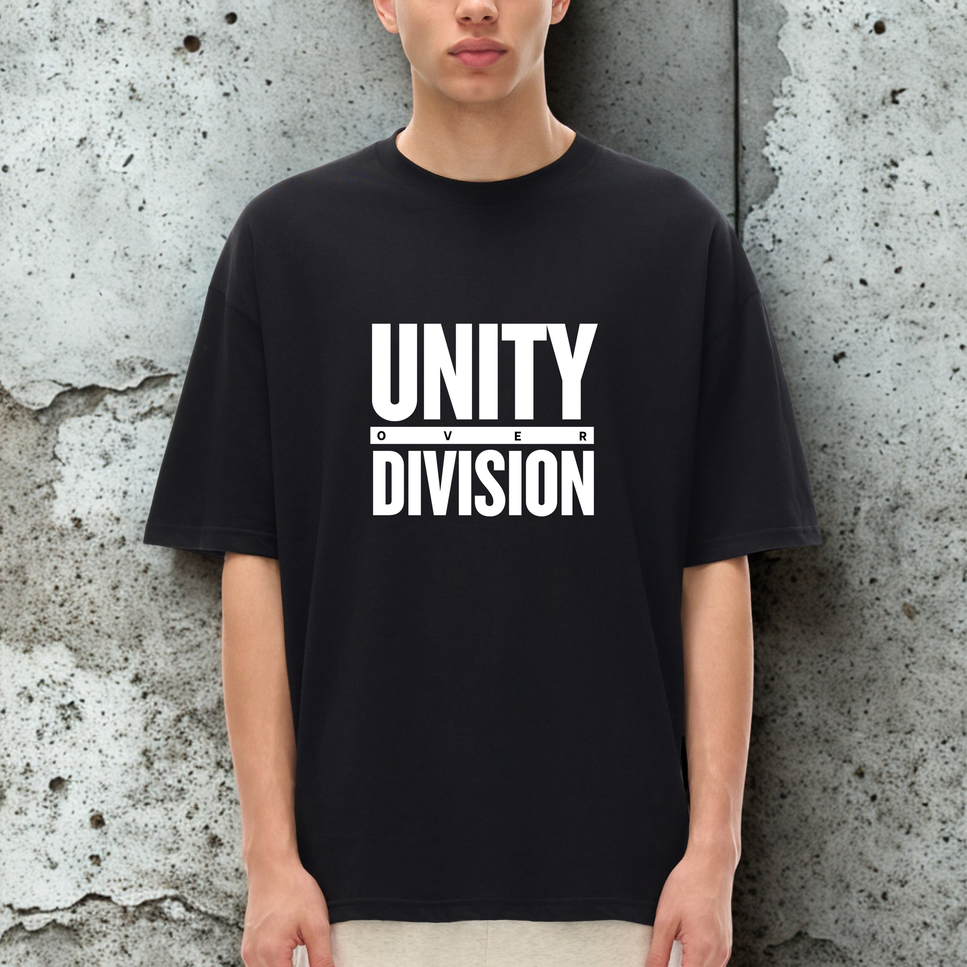 'Unity Over Division' Unisex Loose Drop Shoulder Tee- Black Print